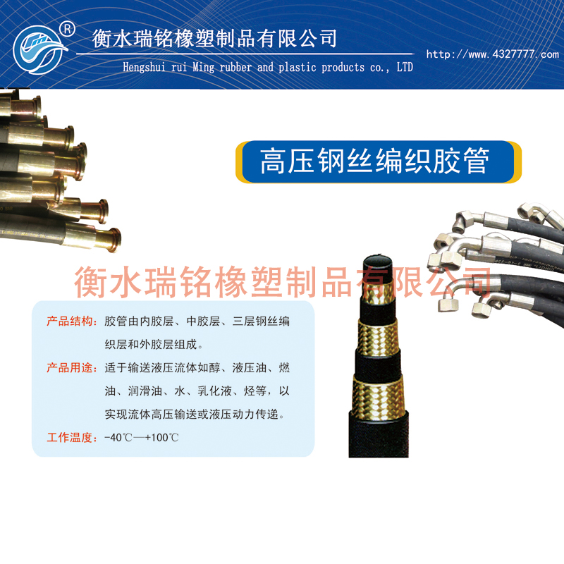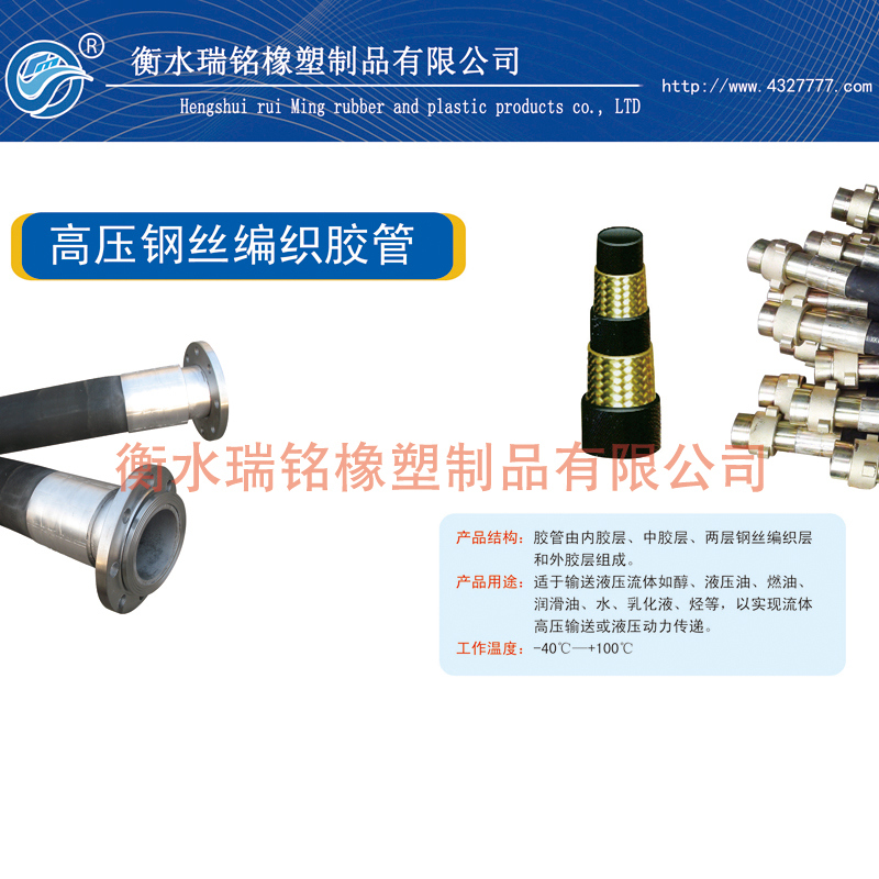 钢丝编织胶管主要用于飞机燃油,矿井液压支架,油田开采,工程机械设备的液压系统中,用来输送高温、高压的煤油、机油,红油(易燃易爆介质),实现压务传递。