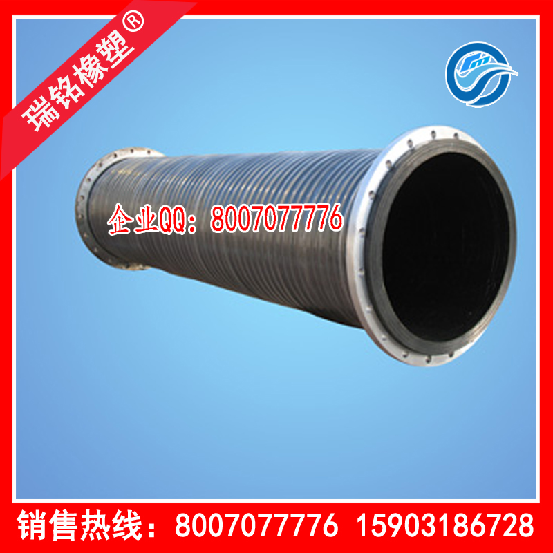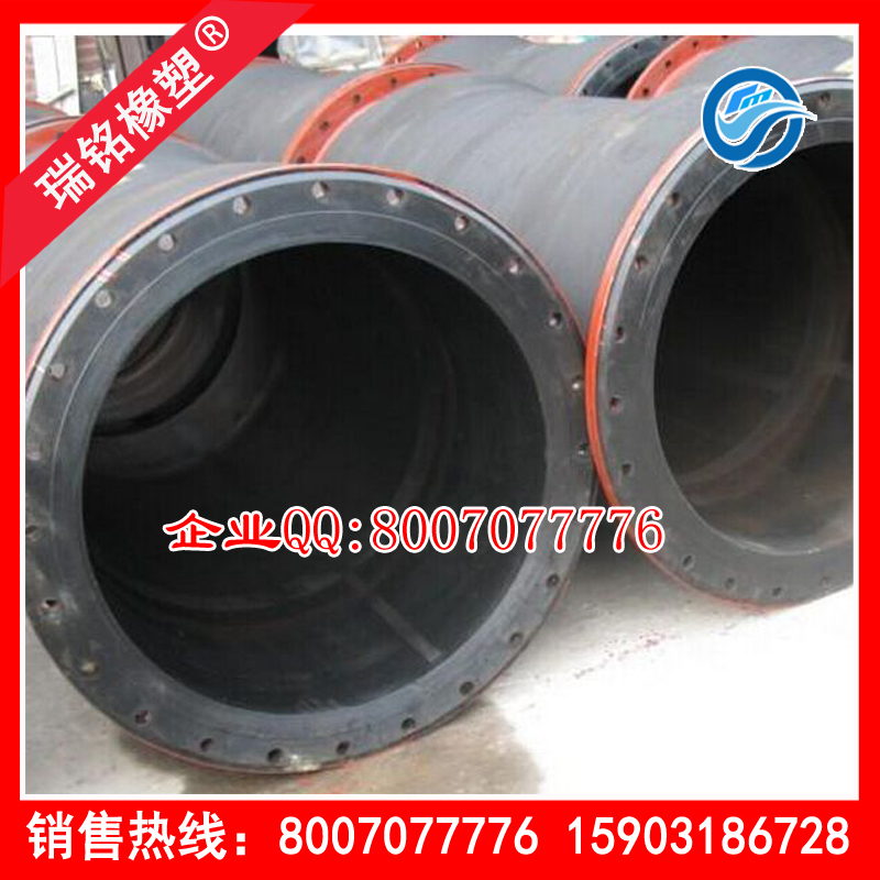 性能:钢法兰排泥胶管用于疏浚船配套输送泥沙;厚壁18-70毫米;适宜工作温度为零下20摄氏度到50摄氏度;便于灵活,安全,耐磨,耐曲挠。