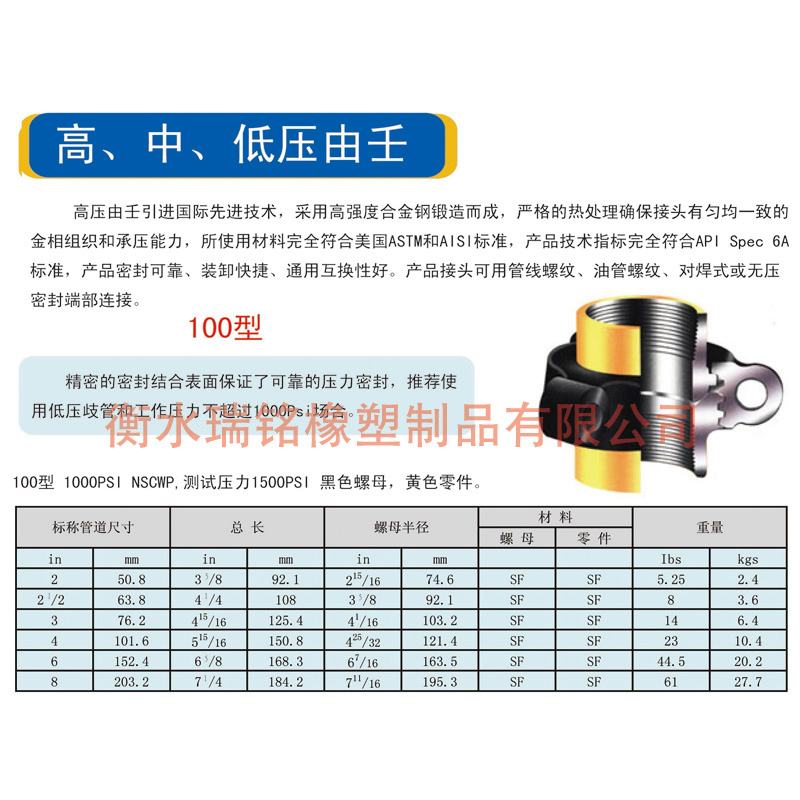 100 1,000/69 管汇和管线联接经济的低压由壬