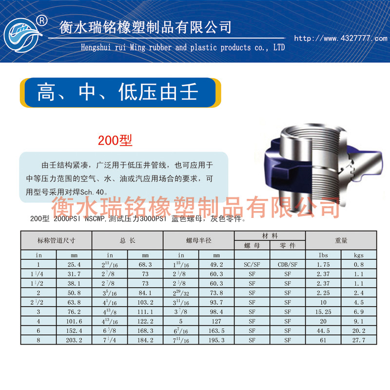 200 2,000/138 管汇和管线联接经济的一般用途由壬