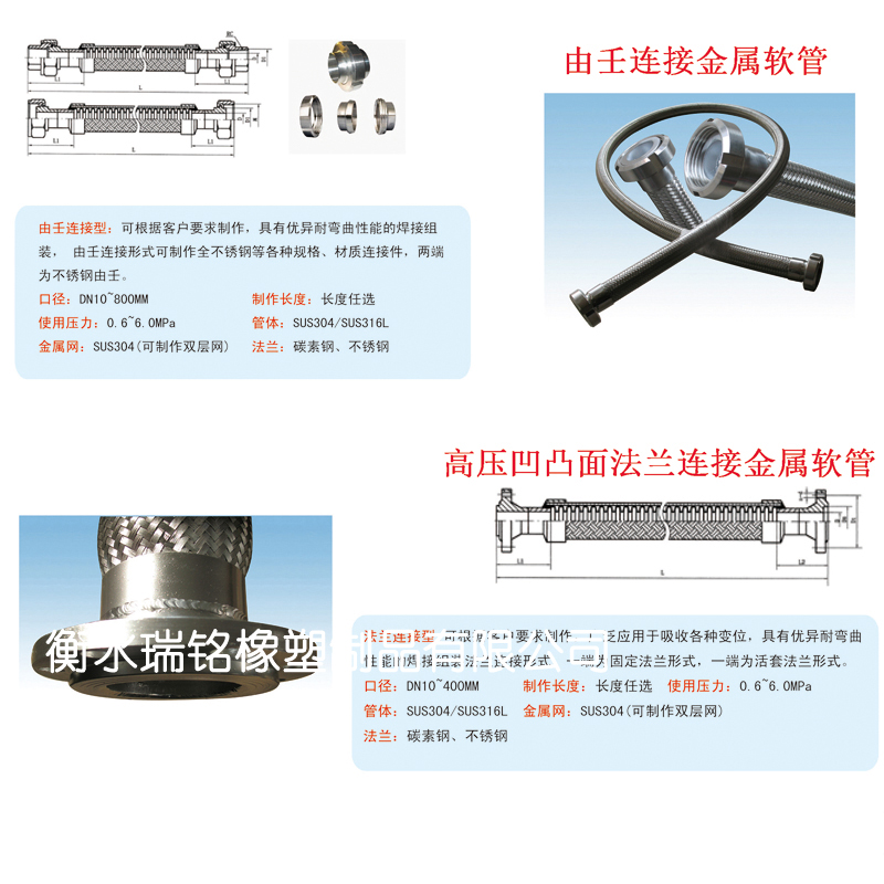 DL-JRH805凹凸面高压法兰连接金属软管法兰连接型,可根据客户要求制作。广泛应用于吸收各种变位具有优异耐弯曲性能的焊接组装法兰连接形式 一端为固定法兰形式,一端为活套法兰形式