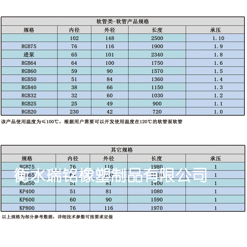 该产品使用温度为≤100℃,根据用户需要可以开发使用温度在120℃的软管