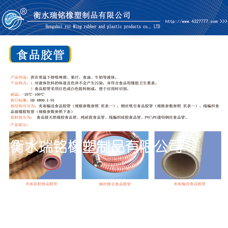 硬壁软管,可用于多种食品的输送与抽吸,特别适合于牛奶以及油脂类食品的输送。 |