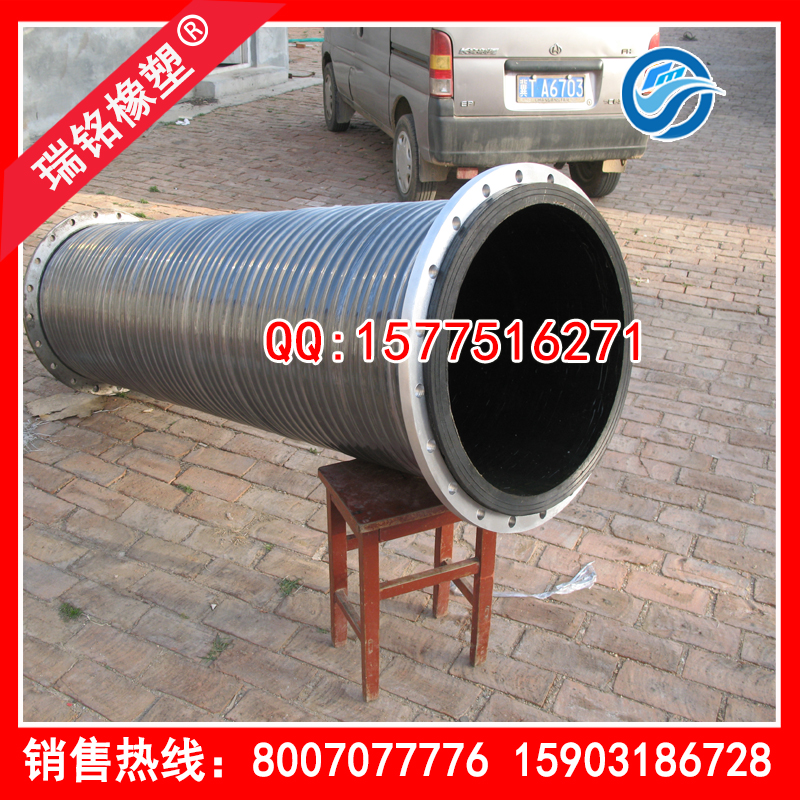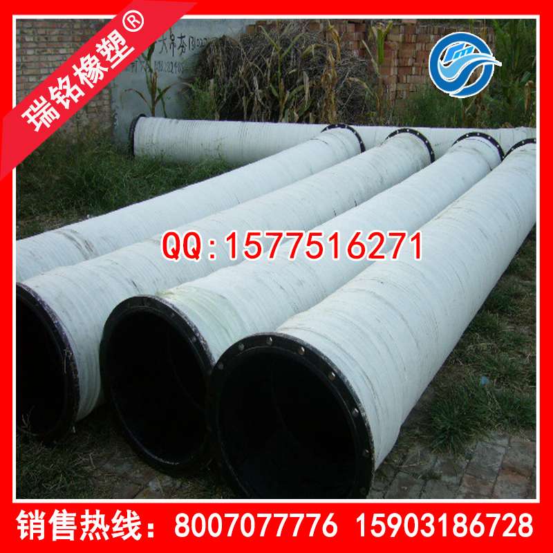 性能:钢法兰排泥胶管用于疏浚船配套输送泥沙;厚壁18-70毫米;适宜工作温度为零下20摄氏度到50摄氏度;便于灵活,安全,耐磨,耐曲挠。