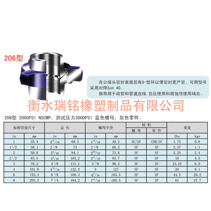 100 1,000/69 管汇和管线联接经济的低压由壬