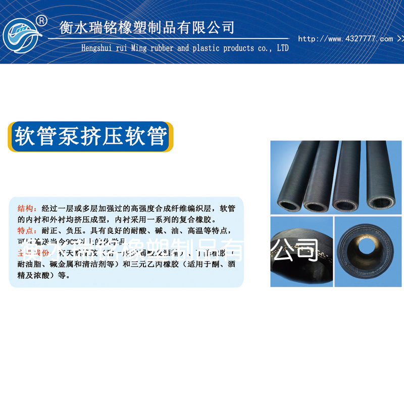 结构:经过一层或多层加强过的高强度合成纤维编织层,软管的内衬和外衬均挤压成型,内衬采用一系列的复合橡胶。