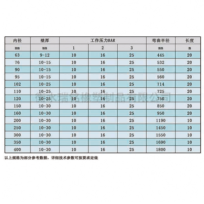 产品结构:散装水泥罐车卸灰胶管由高耐磨合成橡胶或聚氨酯内胶层、多层织物编织增强层、中间连接胶层、耐磨耐老化外胶层组成。